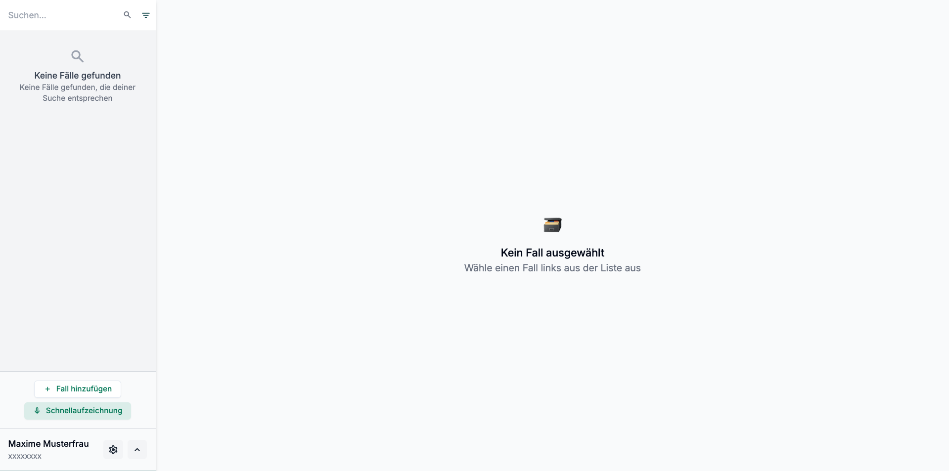 Nach Code-Eingabe sehen Sie Ihren Workspace (Ihre Klinik/Praxis):